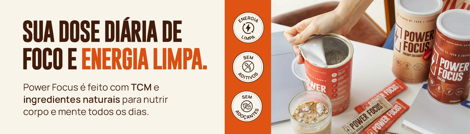 Power Focus é uma marca de produtos voltadas para Brain Health, com opções veganas e não veganas. O principal ativo e fonte de energia dos nossos produtos é o TCM (gorduras do coco), presente em todas as nossas fórmulas. É um superfood funcional que além do TCM (gorduras do coco), cé combinado com ingredientes naturais como café, cacau e proteína de alta qualidade.