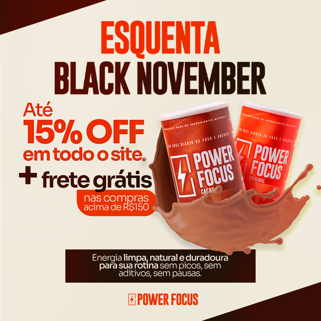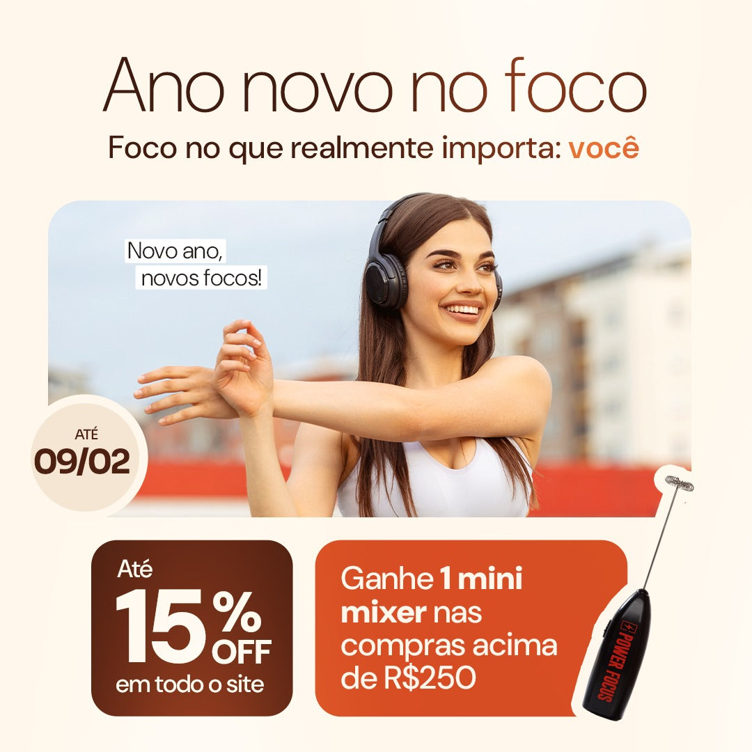 Cada dose de 10g de Power Focus Original contém aproximadamente 30mg de cafeína. Essa quantidade corresponde à cafeína já presente no café usado em nossa fórmula, não há adição extra de cafeína.